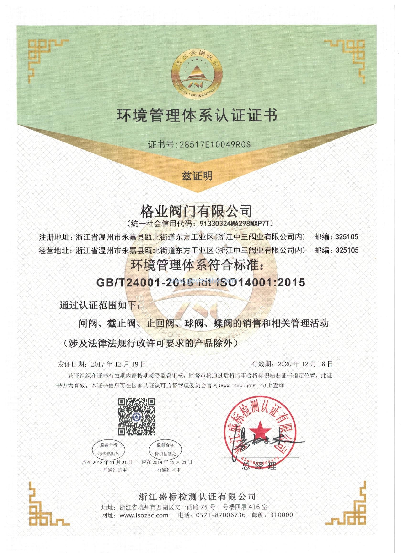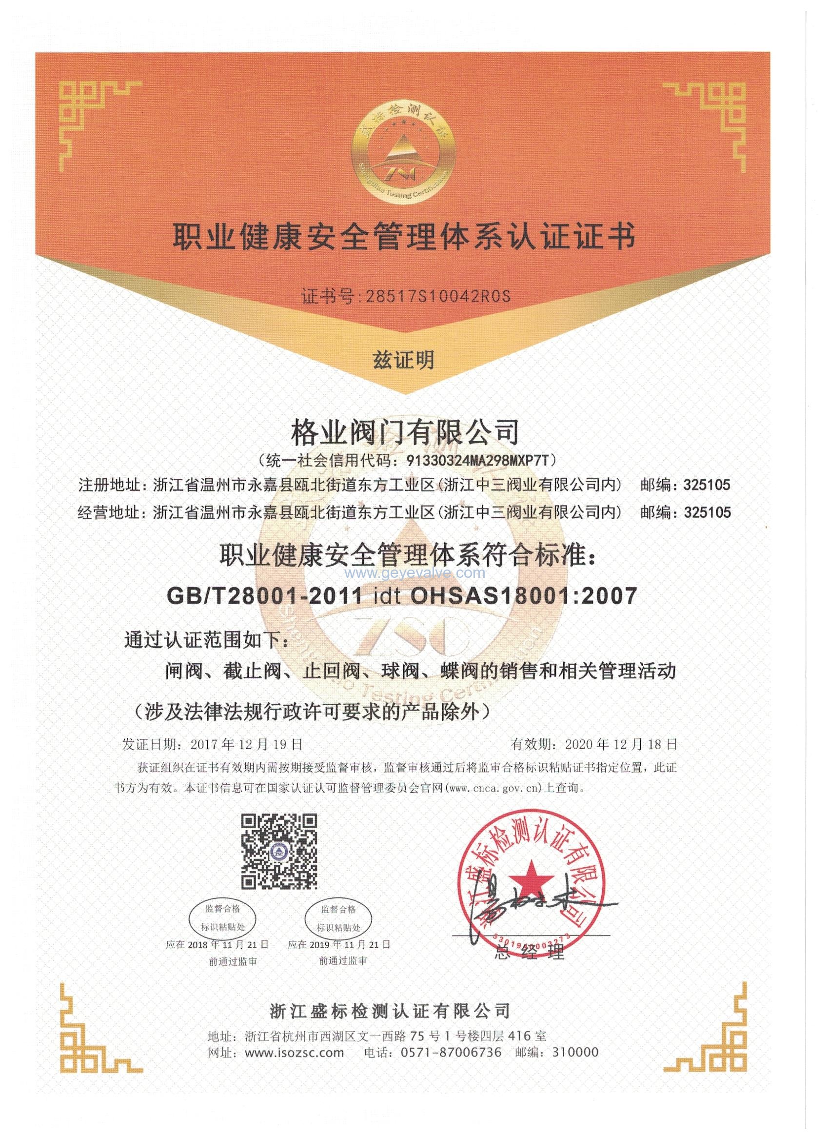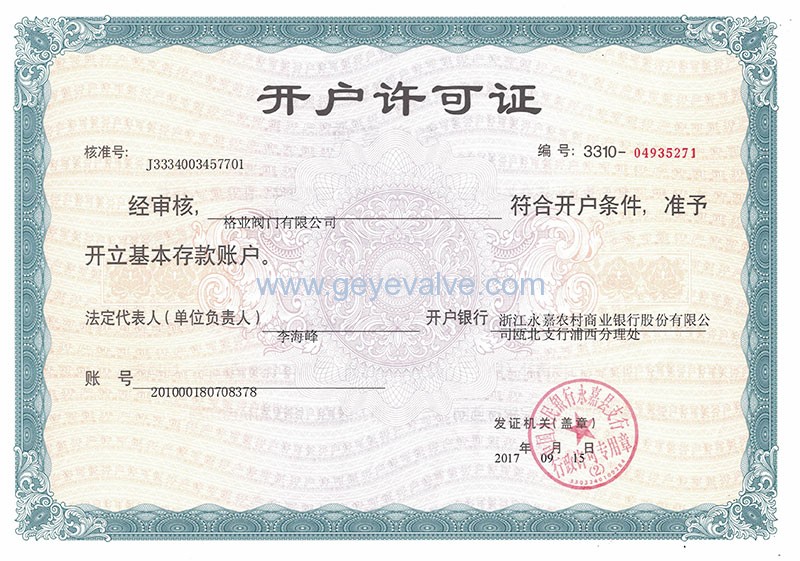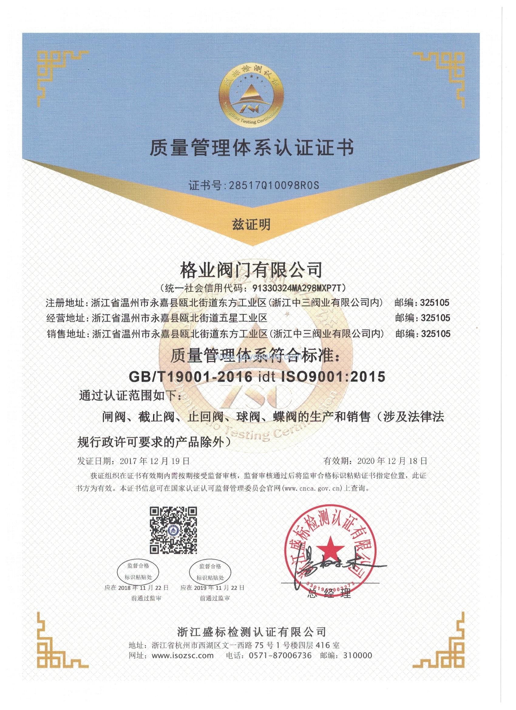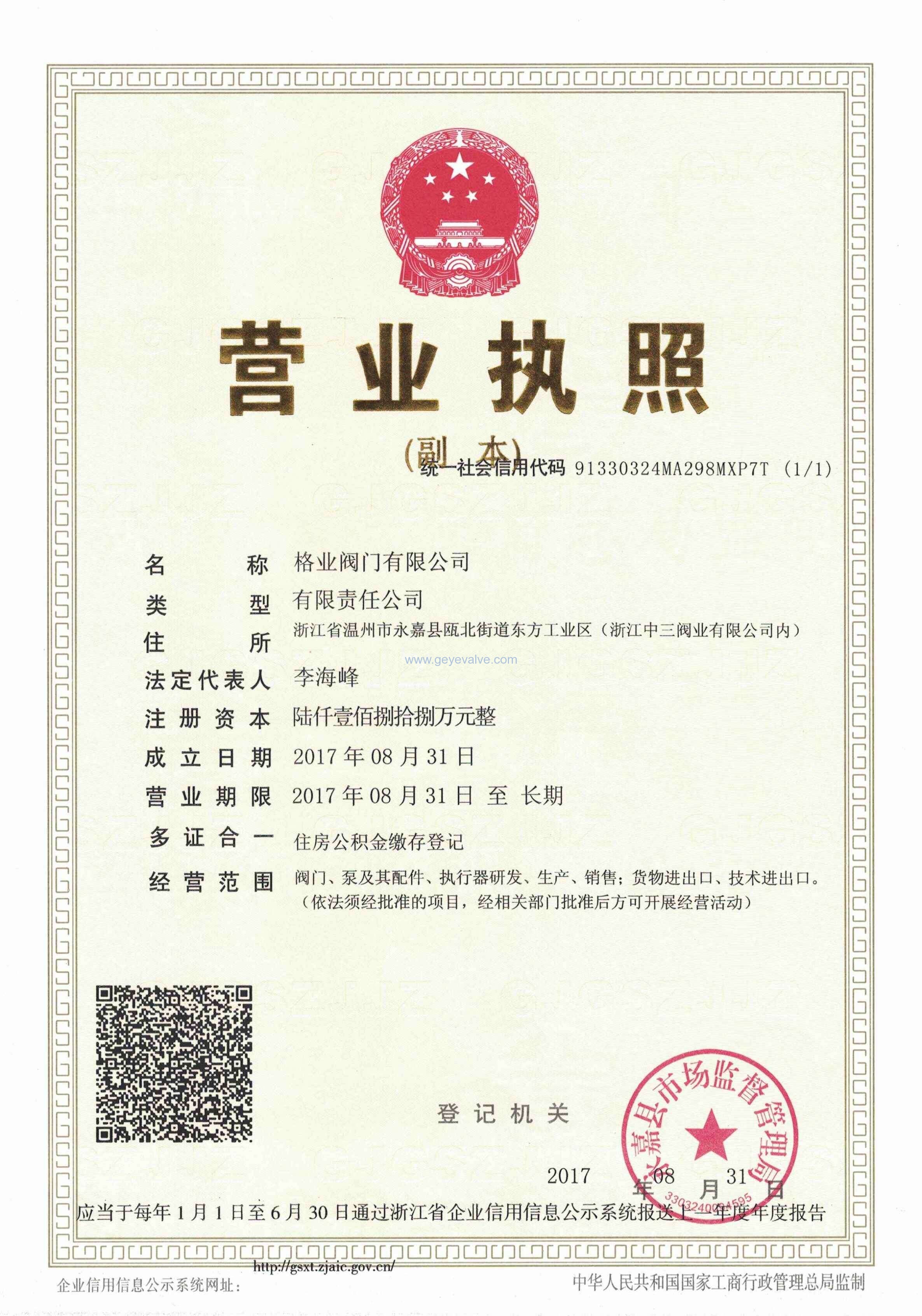 格業閥門有限公司企業資質
