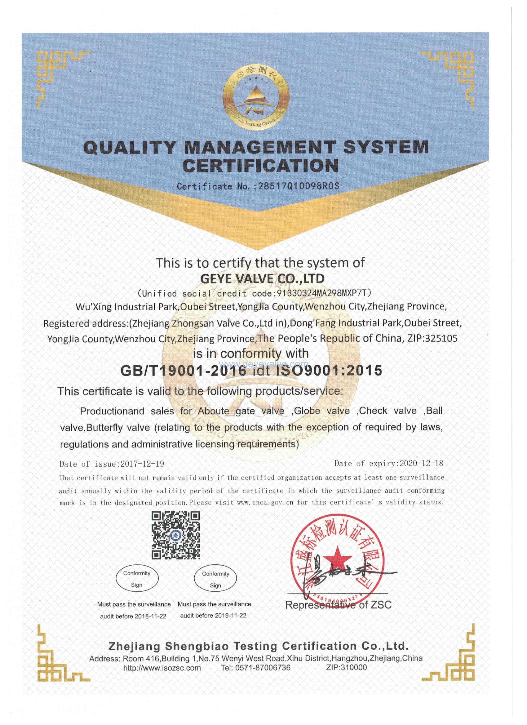 格業閥門有限公司自融合成立以來,根據企業發展需要,快馬加鞭,立即申報各項認證,通過幾個月的努力,現已獲得以下資質。我們將繼續努力,把格業打造成一家品質過硬,資質齊全,服務周到的實力型品牌企業!歡迎廣大客戶、同行及各界朋友督促,共同見證格業公司發展壯大!